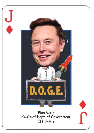 The Trump Presidential Deck is the MUST HAVE political souvenir for supporters of Donald Trump!! The deck celebrates Trump and his policies ... and you have to see the Jokers!! Each card face is unique and uses original artwork to portray a prominent statesman or personality to communicate the reasons why Trump was re-elected President in 2024!!