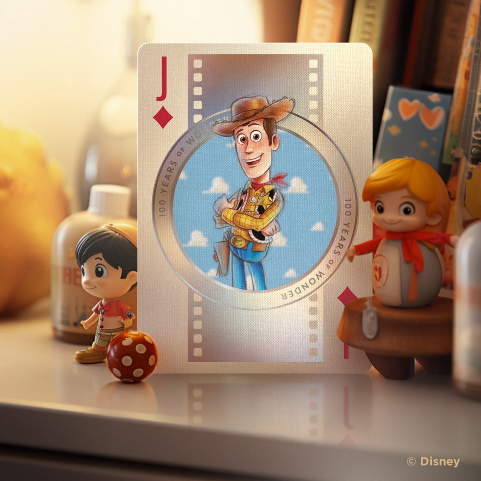 Experience the enchantment of Disney with Bicycle Disney 100 Year Anniversary Limited Edition Playing Cards. Featuring 20+ beloved characters across the Disney and Pixar universes, this officially licensed deck is a must-have for Disney fans and collectors! With holographic foiling, embossing, and nostalgic illustrations, these Disney playing cards capture the essence of the iconic characters Disney has brought to life the last 100 years. Crafted with premium card stock and an Air-Cushion Finish, these cards ensure durability and provide smooth shuffling and dealing. Whether you're a casual player wanting to share the magic of Disney with your children or a serious collector, these Disney 100 Year Anniversary Playing Cards are a delightful choice. Bring the magic of Disney into your card games and add a touch of charm to your collection.