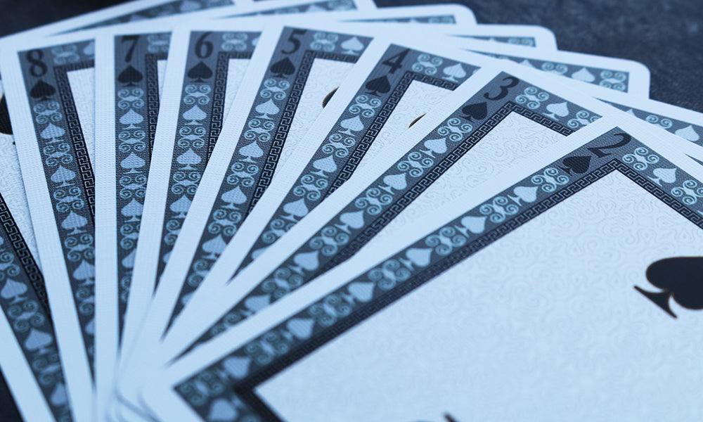 All court card are fitted in gold, while the numbered cards are fitted in silver. This combination gives this deck a unique appeal that no other deck has ever done.