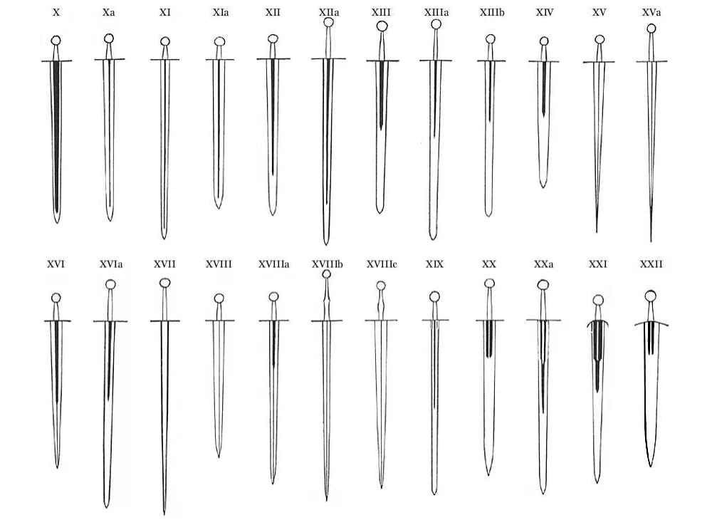 The Oakeshott typology is a way to define and catalogue the medieval sword based on physical form. It categorises the swords of the European Middle Ages (roughly 11th to 16th centuries[1]) into 13 main types, labelled X through XXII. The historian and illustrator Ewart Oakeshott introduced it in his 1960 treatise The Archaeology of Weapons: Arms and Armour from Prehistory to the Age of Chivalry.
