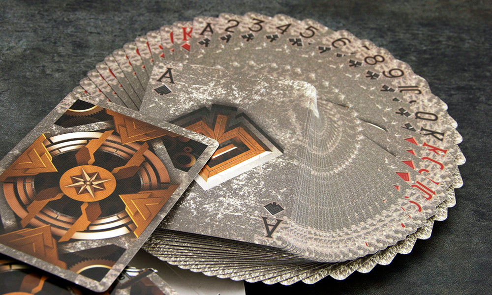 Los contornos de las pepitas son algo que nunca antes se había visto en una baraja de cartas. Tienen un diseño 3D muy sólido que llama la atención con bastante rapidez. Y los colores son muy estoicos y firmes, lo que combina bien con el concepto de la baraja.