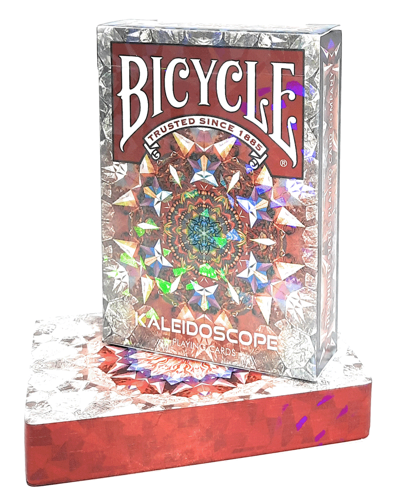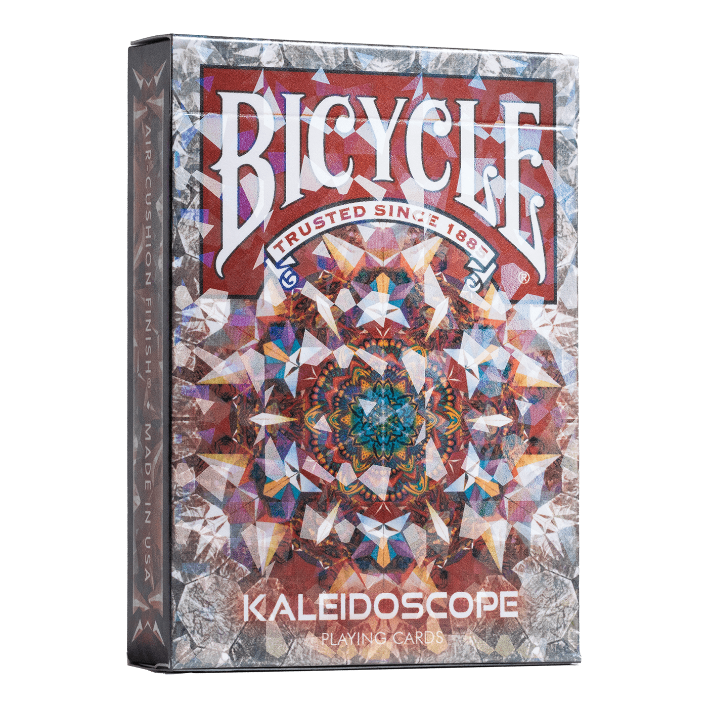 Una infinidad de realidades con cada sacudida y giro. El efecto caleidoscopio es causado por múltiples reflejos y ángulos que crean la simetría perfecta de colores y formas. Arte, naturaleza, matemáticas y ciencia se unen para crear esta magnífica baraja de naipes holográfica. Reflexiona sobre las infinitas posibilidades de todo el universo mientras juegas. Marca de bicicleta