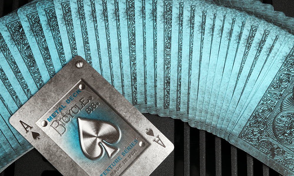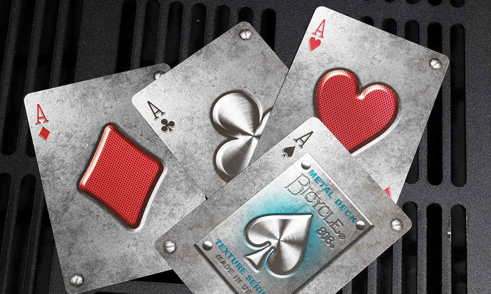 METAL DECK es una reinterpretación de la clásica baraja Bicycle RIDER BACK utilizando un conjunto de texturas para darle a las cartas un aspecto de metal real.