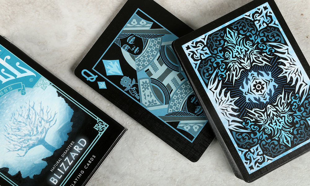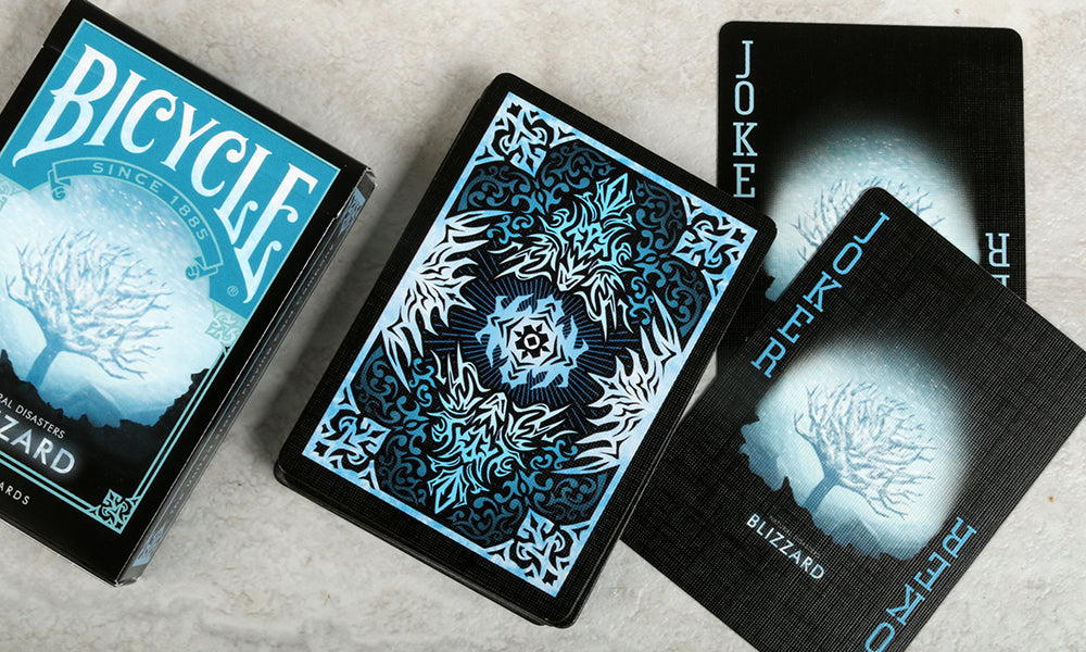 La baraja Bicycle Natural Disasters "Blizzard" es la quinta de una serie de 7 desastres naturales. Todos los desastres naturales son las fuerzas más mortíferas que la madre naturaleza tiene para ofrecer. ¡Esperamos lanzar cada mazo con 2 o 3 semanas de diferencia para mantenerte anticipado! La colección de barajas será producida por Collectable Playing Cards e impresa por la USPCC. ¡Asegúrate de refugiarte!