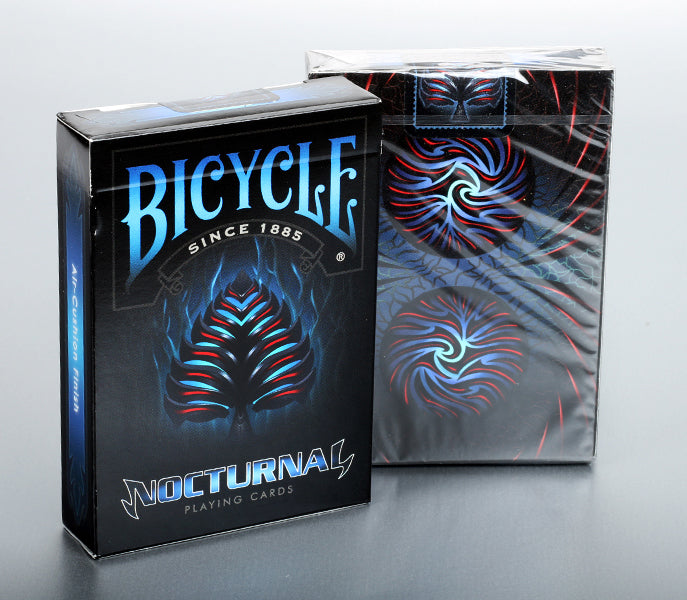 La baraja Nocturnal de Collectable Playing Cards es una baraja con funciones nítidas que destacará en cualquier tipo de colección. Los colores oscuros pero vivos se destacan en medio de una ráfaga de picos y grietas radicales. Combinamos un contraste de azules oscuros y rojos oscuros contra una tarjeta negra y plateada. Los colores crecen de oscuro a claro creando un abanico impresionante.