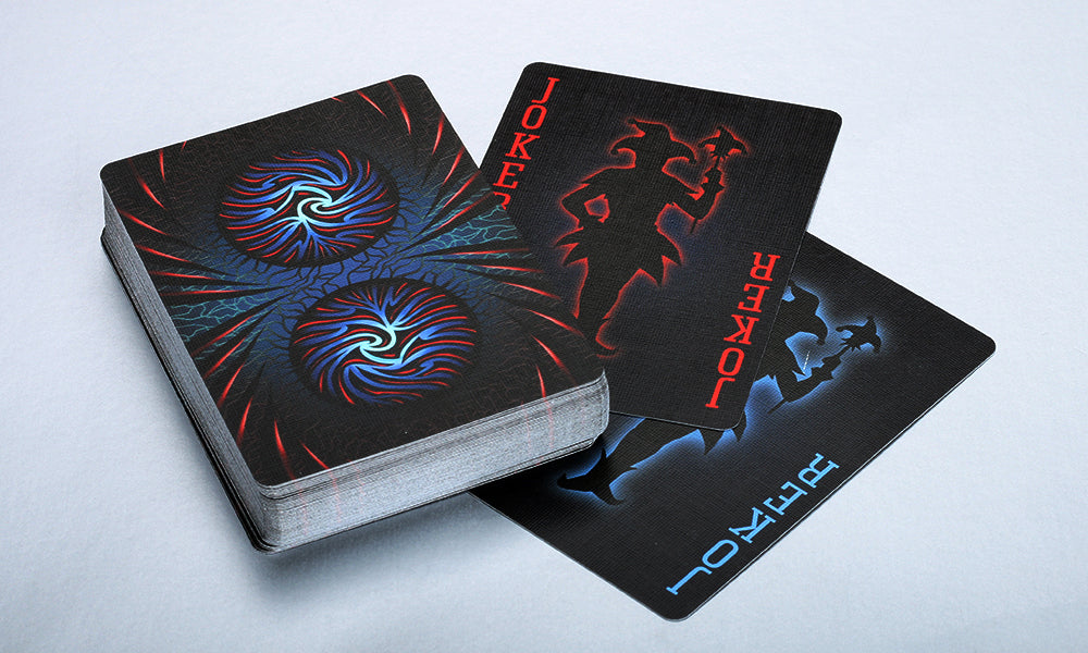 Las cartas del Joker son una silueta del propio bufón sobre un fondo negro azabache.