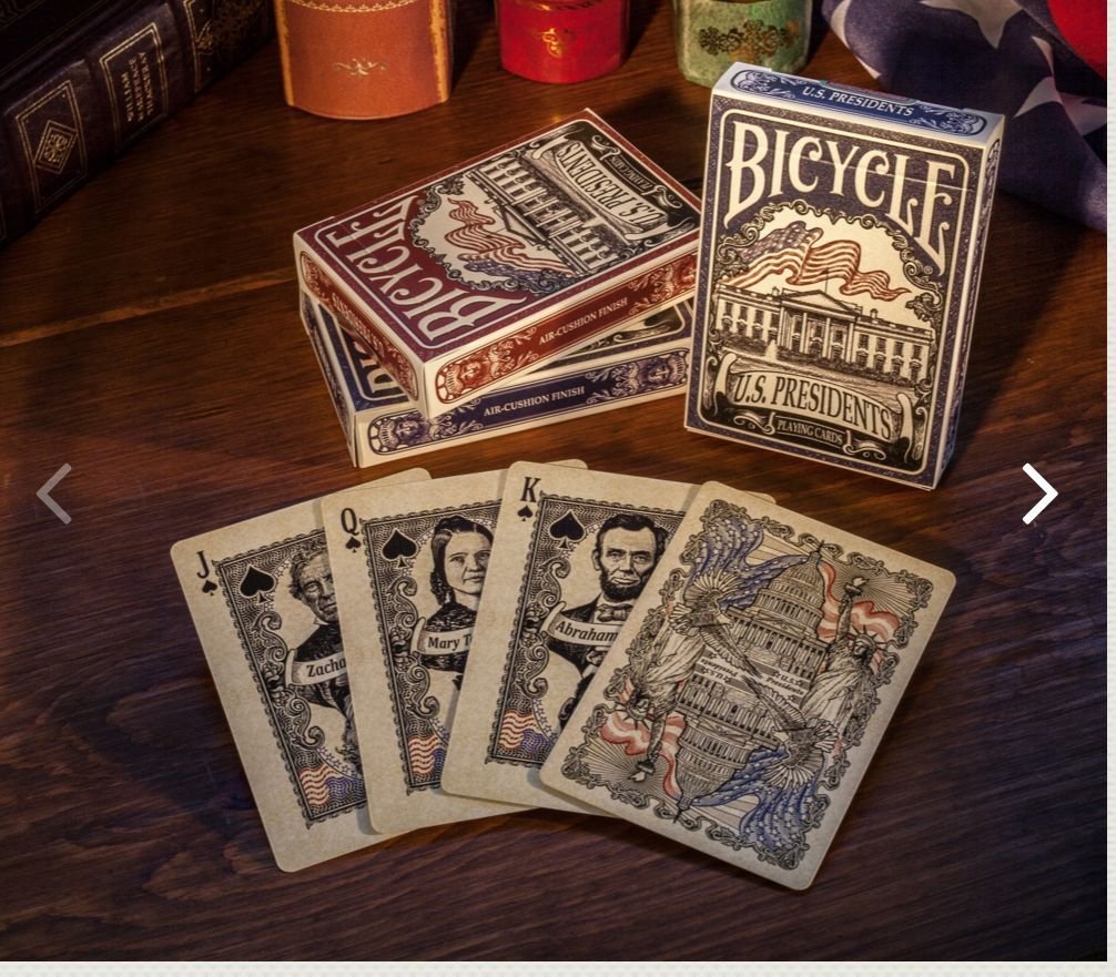 Será difícil no reflexionar sobre la historia de nuestra gran nación y los logros de nuestros líderes pasados mientras jugamos con estas cartas. Bicicleta ? Los naipes de los presidentes de EE. UU. cuentan con los 44 presidentes de EE. UU. y las 4 primeras damas como reinas de naipes destacadas, todos dibujados a mano con detalles intrincados. Perfecto para cualquier aficionado a la historia y entusiasta de las cartas.