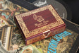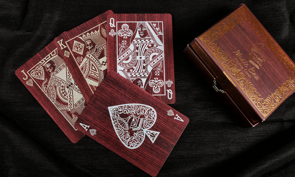 La plataforma se completa con un acabado de diseño de madera de cerezo oscuro con lámina dorada en relieve. Es un diseño deslumbrante y fue diseñado para parecer lo más auténtico posible. La solapa se levanta desde el ojo de la cerradura donde estaban las cartas esperando a ser jugadas.