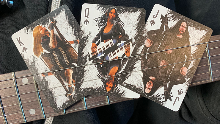 Prepárate para ROCK... tu próximo juego de cartas o rutina mágica con los naipes Rock & Roll Bicycle de edición limitada y totalmente personalizados. Las cartas de la corte representan a músicos de distintos géneros de rock, como metal, punk, emo y pop. Los Aces son bateristas y los Jokers son guardias de seguridad y fanáticos. También se incluyen una tarjeta con doble dorso y cara para realizar 2 Card Monte y otros trucos de magia (instrucciones no incluidas). Así que toma una plataforma y pon tu espectáculo en marcha.