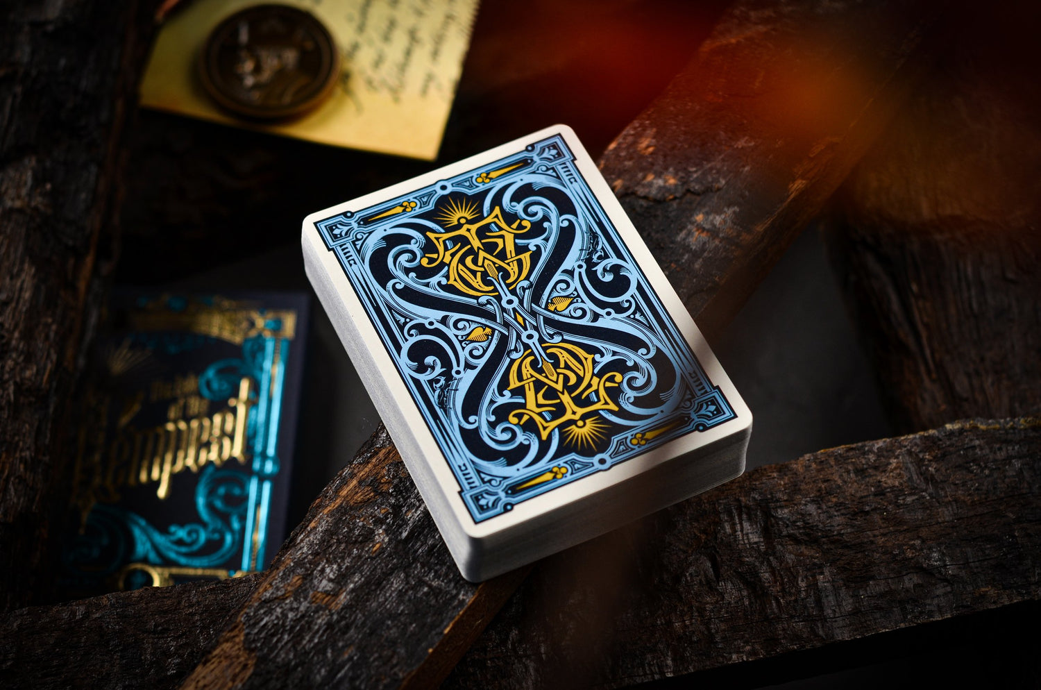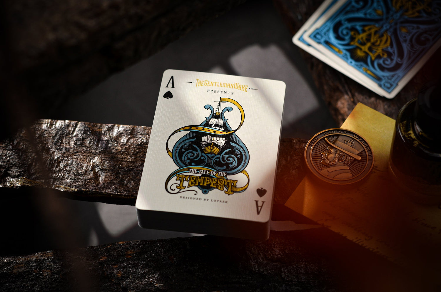 Una baraja de cartas magníficamente diseñada que evoca el estilo clásico y la utilidad diseñada para jugadores, coleccionistas, entusiastas de las cartas y practicantes de las artes mágicas. The Tale of the Tempest Playing Cards inmortaliza la leyenda del mago e ilusionista The Great Wylenti y su mal engendrada búsqueda para descubrir misterios dignos de su nombre, la torrencial tempestad que derribó su expedición y su implacable viaje para reunirse con el hermosa dama Eliza.