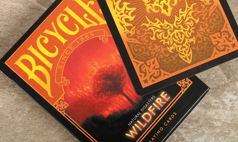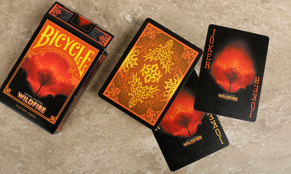 La baraja Bicycle Natural Disasters "Wildfire" es la segunda de una serie de 7 desastres naturales. Todos los desastres naturales son las fuerzas más mortíferas que la madre naturaleza tiene para ofrecer. ¡Esperamos lanzar cada mazo con 2 o 3 semanas de diferencia para mantenerte anticipado! La colección de barajas será producida por Collectable Playing Cards e impresa por la USPCC. ¡Asegúrate de refugiarte!