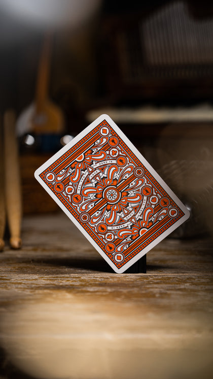 Una impresionante caja de lámina de marfil y oro que contiene uno de cada uno de los naipes premium de The Beatles. La caja está envuelta en un diseño intrincado y elegante en casi todas las superficies y sellada con un cierre magnético. Hecho a mano en los EE. UU. con papel certificado FSC.