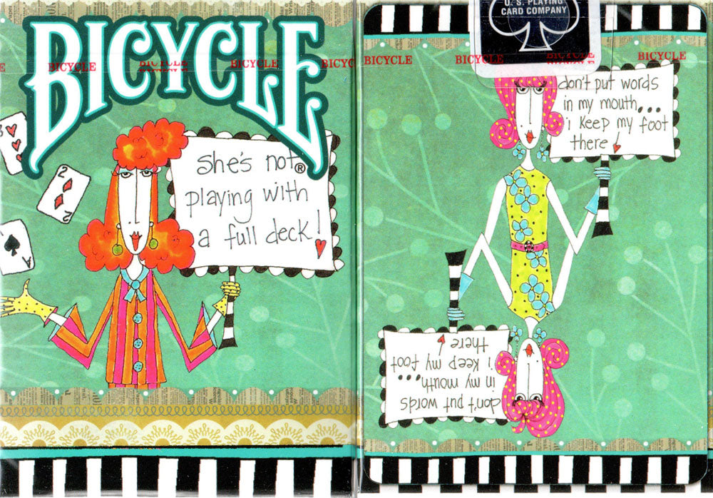 The Dolly Mama deck is a fun and witty premium 54-card deck featuring the whimsical imagery of artist Joey Heiberg. The Tuck and Backs of this unique deck features humorous artwork by Joey that will delight every collector. In Joey's world, "different is beautiful and dreams come true because there are no fears".