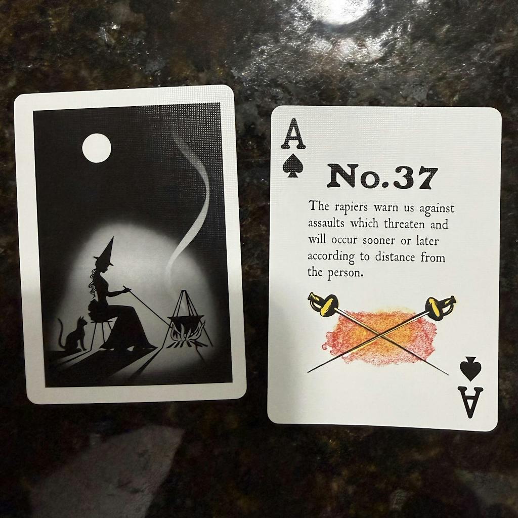 This refreshed design of our classic Gypsy Witch playing cards is just in time for fall. The story goes that Anne Marie Le Normand was a celebrated French mystic who left an extraordinary imprint on divination. Her system of discerning the past, present, and future by means of cards was celebrated amongst spiritualists, and we have reproduced the concepts here, and have arranged the game so that any person can lay the cards in proper position and proceed with a reading. Alternatively, any traditional playing card game may also be played with these cards.
